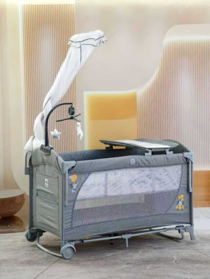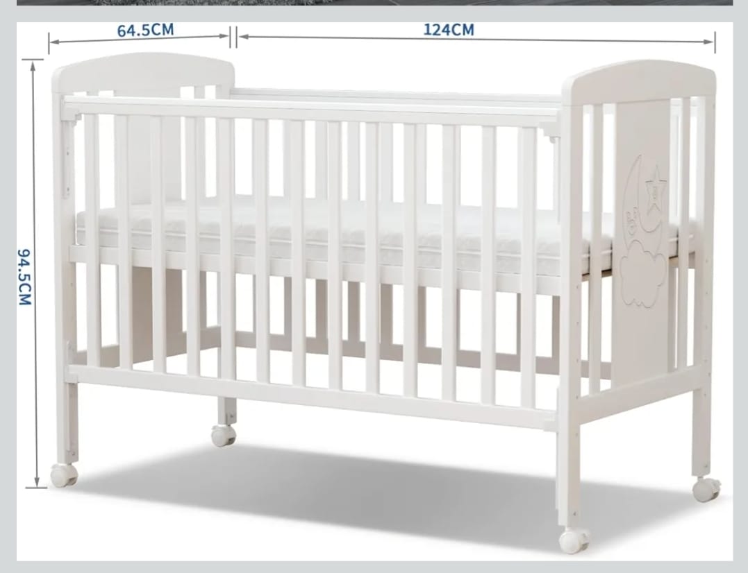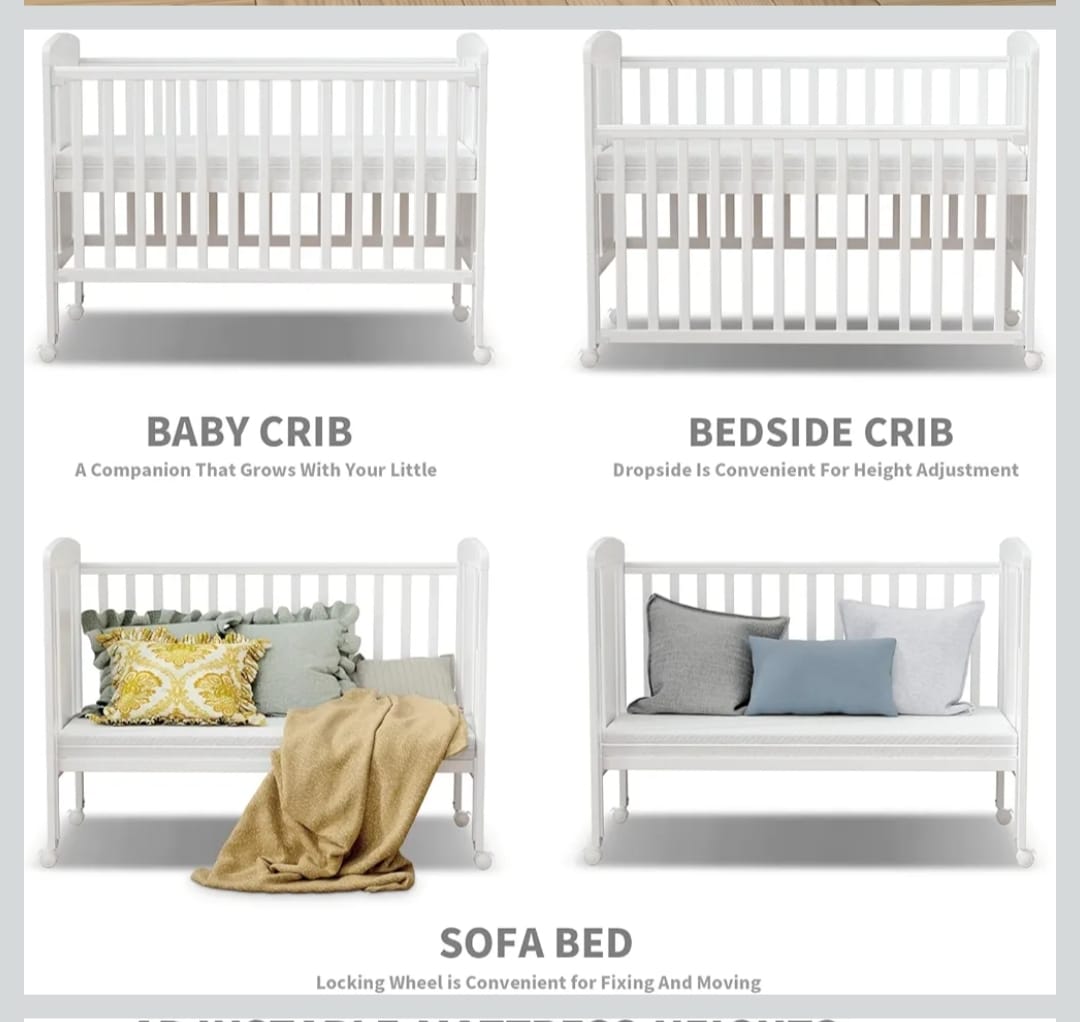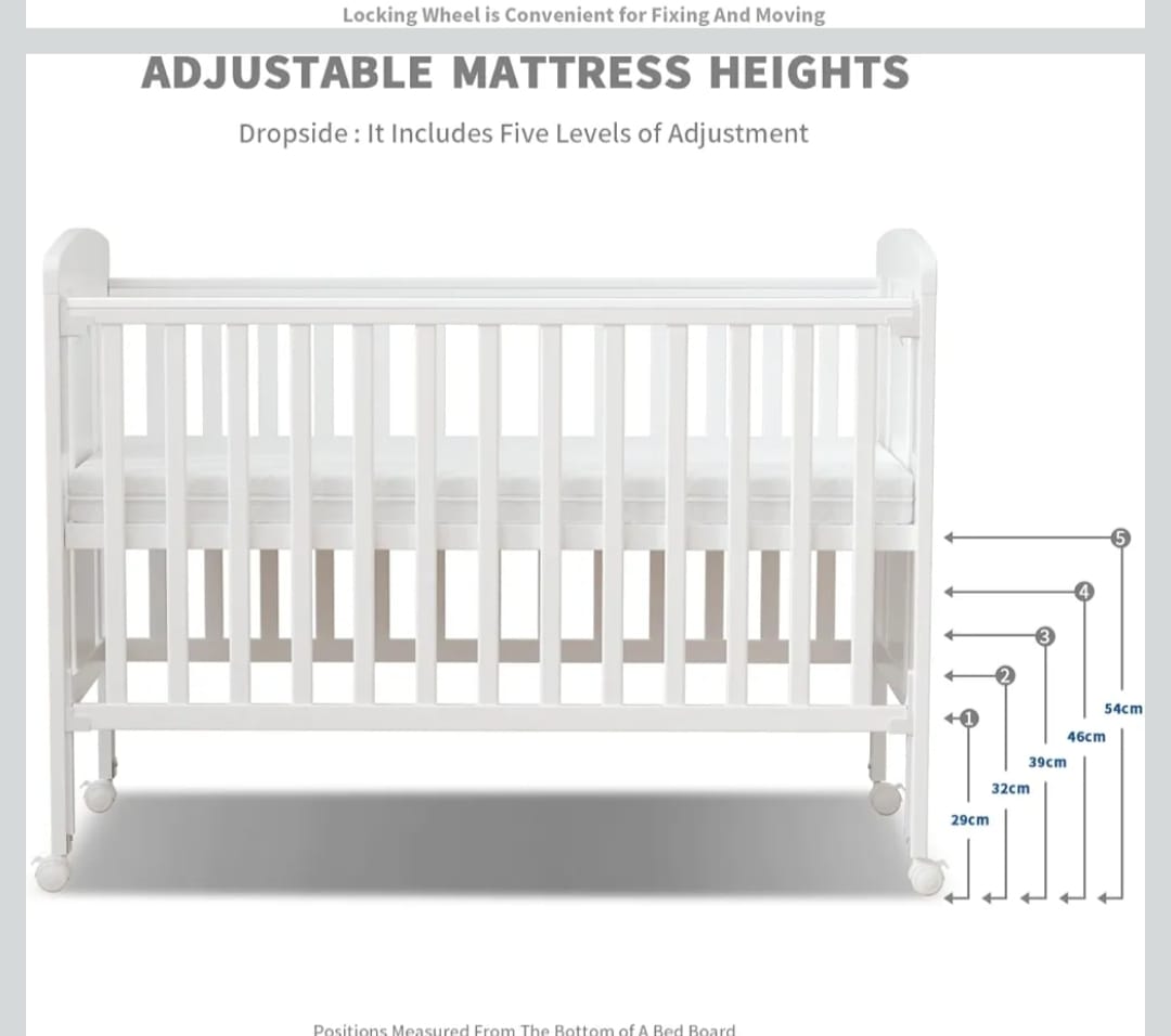 سرير بيبي قياس 120*60 سياج جانبي متحرك مع عدة مستويات بالإضافة لعجلات